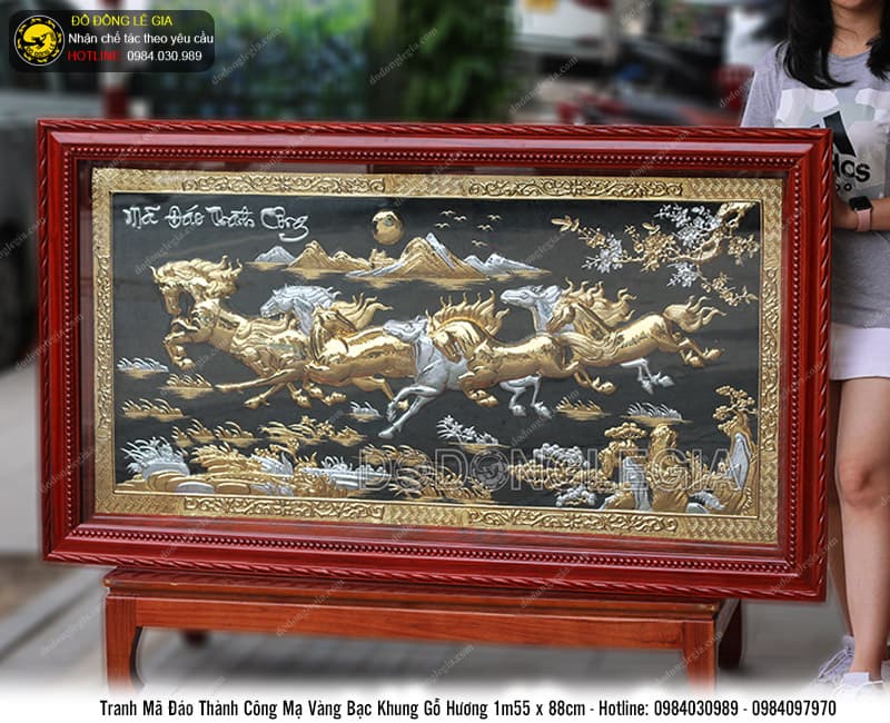 | Tên sản phẩm: | Tranh Bát Mã mạ vàng bạc khung gỗ hương 1m55 x 88cm |