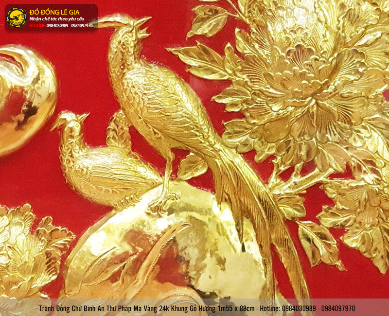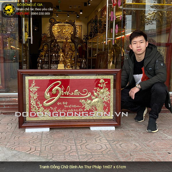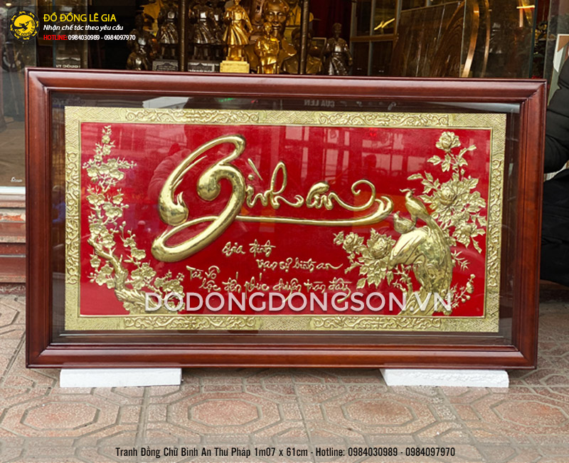 Tranh chữ Bình An Bằng Đồng có nền đỏ, nền đen và nhiều kích thước cho khách hàng lựa chọn