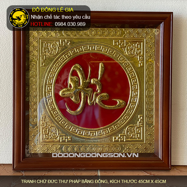 Tranh chữ đức bằng đồng là vật phẩm trang trí, là món quà ý nghĩa, rất được trân trọng trong cuộc sống. Tranh chữ Đức thường được kết hợp cùng với tranh chữ tâm, tranh chữ phúc tạo thành bộ ba tranh này được mọi người tặng nhau trong những ngày lễ tết hay các dịp quan trọng.
