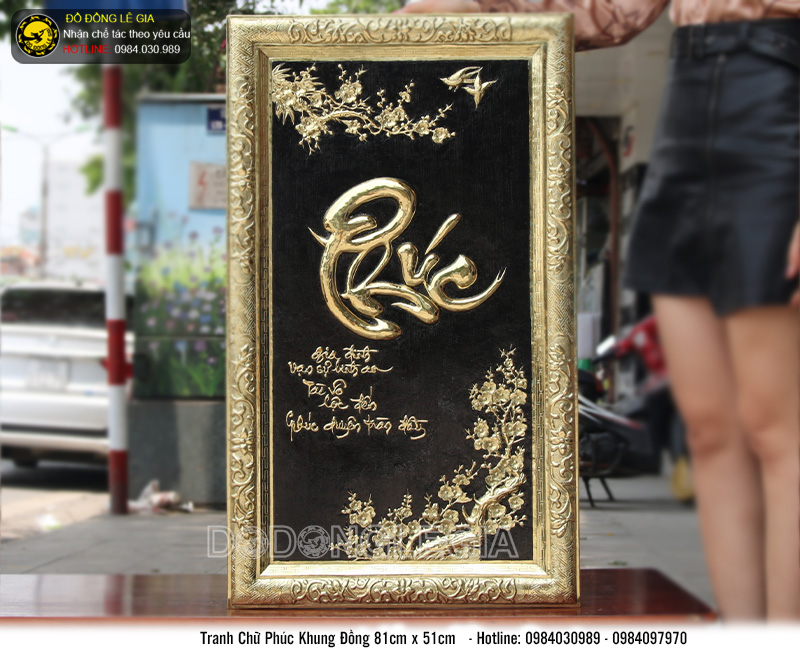 | Tên sản phẩm: | Tranh chữ Phúc khung đồng 51x86 theo yêu cầu |