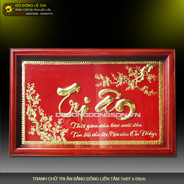 Tranh chữ Tri Ân thư pháp bằng đồng liền tấm là món quà để tôn vinh, bày tỏ lòng biết ơn đối với cha mẹ, thầy cô giáo, với Sếp, khách hàng, đối tác. Bức tranh vừa đẹp lại vừa mang hàm ý tốt lành nên đang là một trong số món quà tặng được săn lùng nhiều nhất trong thời gian gần đây.