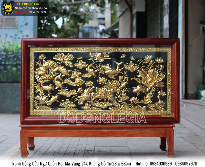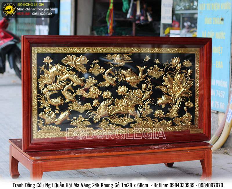 | Chất liệu: | Đồng vàng dày 8 rem , mạ vàng 24k,khung gỗ |