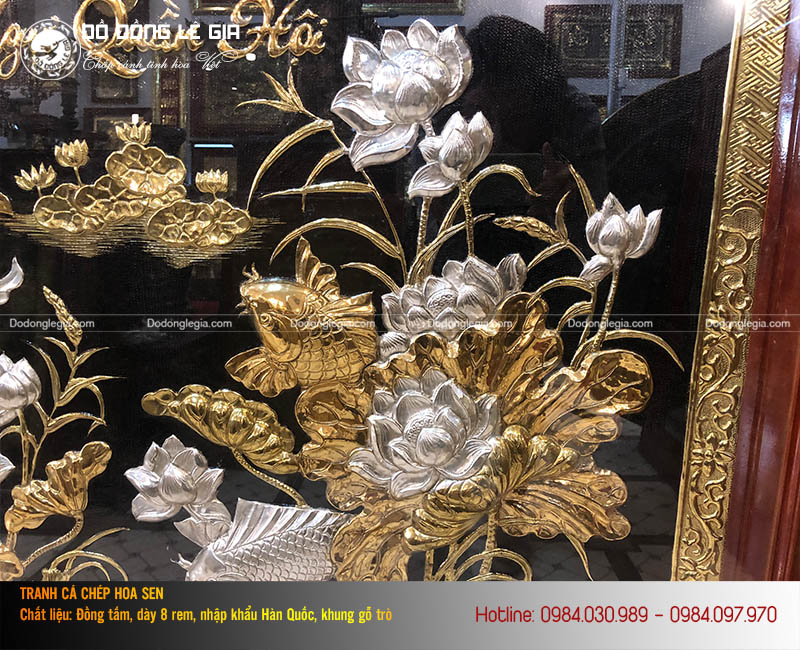 Cá chép kết hợp với hoa sen thể hiện cuộc sống dư dả liên hồi, đầy đủ quanh năm. Tranh cửu ngư quần hội mạ vàng dát bạc chính là biểu tượng cho sự dư dả dài lâu, sự sung túc, tài lộc dồi dào. Bức tranh sẽ tiếp thêm sức mạnh, sự kiên trì, lòng dũng cảm, giúp gia chủ vượt qua khó khăn để vươn đến thành công. Khi treo tranh trong phòng khách, bạn sẽ có được may mắn, thịnh vượng. Treo trong văn phòng làm việc công việc sẽ được thành công, thăng quan tiến chức.
