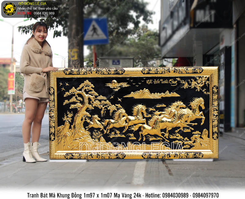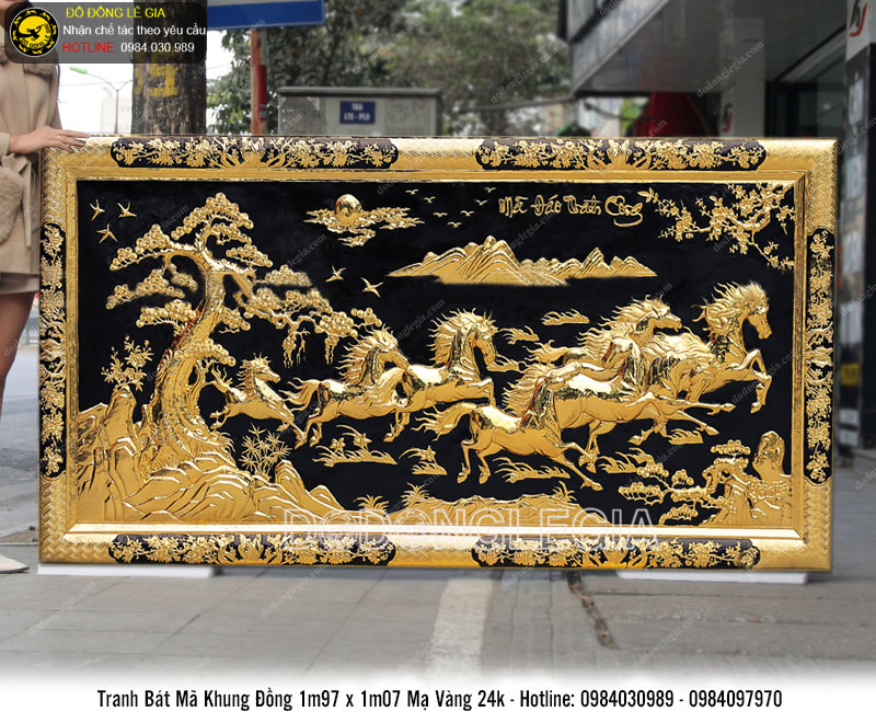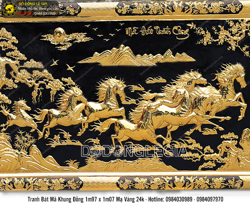 | Tên sản phẩm: | Tranh đồng bát mã khung đồng liền tấm mạ vàng 24k kích thước 197x107cm |