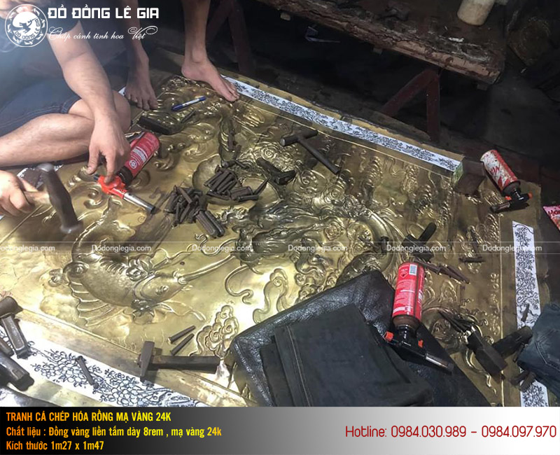 Quy trình chế tác tranh cá chép hóa rồng mạ vàng 24k