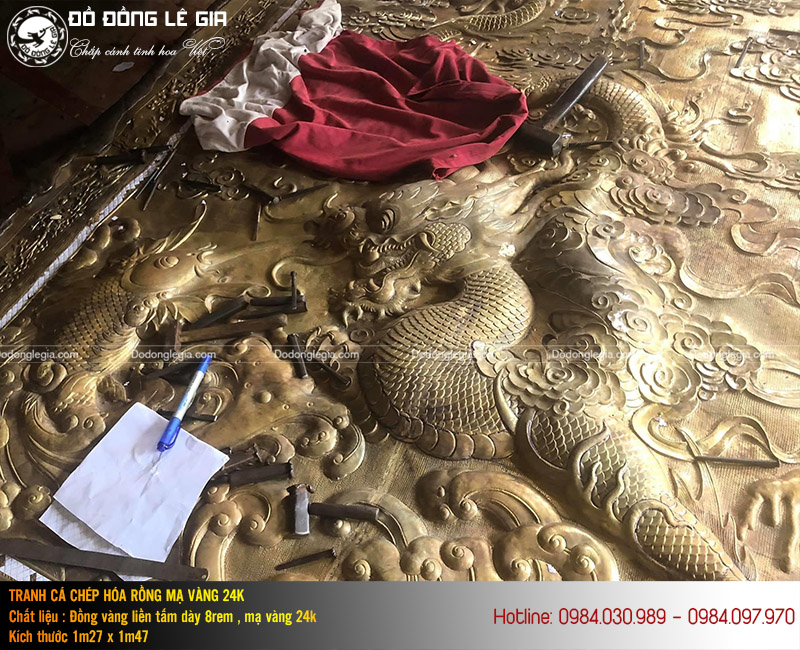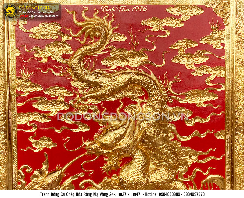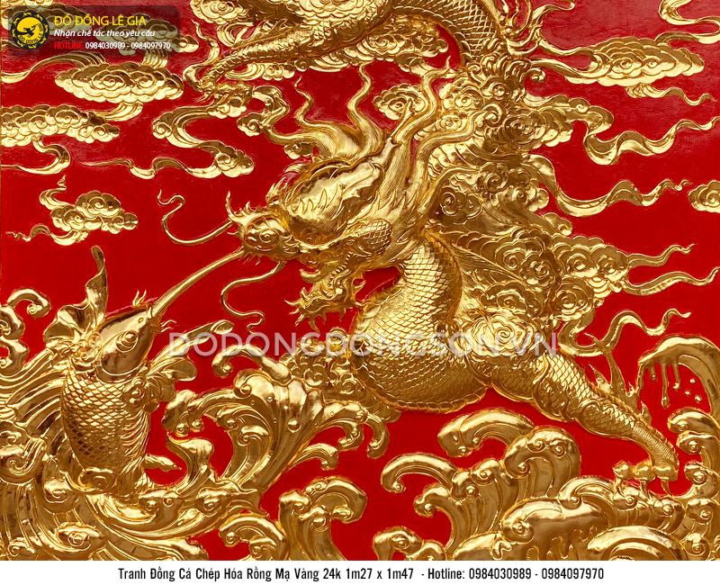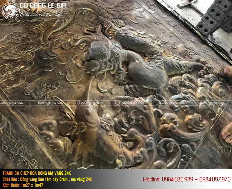 Tranh đồng cá chép hóa rồng mạ vàng 24k cũng là một trong những sản phẩm đồ đồng cao cấp được các nghệ nhân của Lê Gia chú trọng. Nếu quý khách hàng đang có nhu cầu chọn mua sản phẩm, hãy liên hệ với chúng tôi để đặt mua hàng.