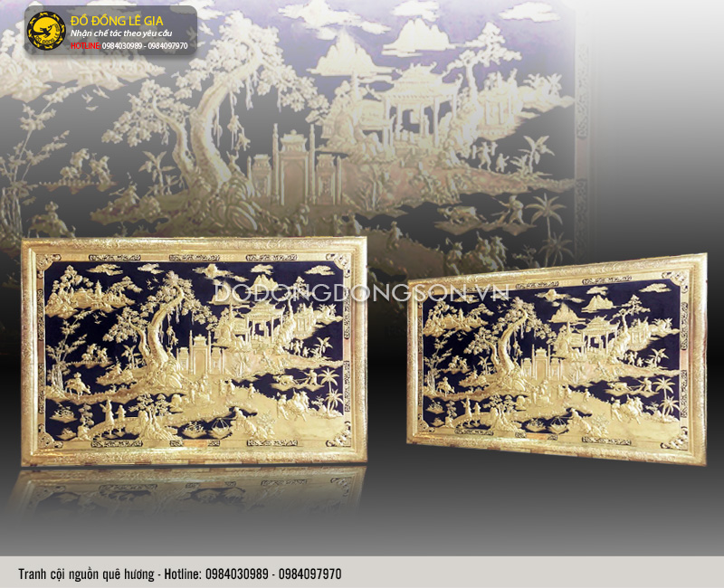 Bức tranh được chế tác hoàn toàn thủ công từ những nghệ nhân có kinh nghiệm lâu năm tại xưởng đồ đồng Lê Gia. Từ khâu chọn chọn nguyên liệu đến các công đoạn chế tác đều được kiểm tra nghiêm ngặt. Nên bức tranh mang vẻ đẹp tinh xảo, sinh động, hấp dẫn, có hồn. Đặc biệt, toàn bộ chi tiết trong lòng tranh đều được mạ vàng thanh khiết làm tăng tính thẩm mỹ và tăng tuổi thọ cho bức tranh. Sự kết hợp hai màu tương phản đối lập là màu vàng sáng bóng với nền đồng sơn đen khiến bức tranh càng đẹp hơn, lộng lẫy hơn, sang trọng hơn. Khi treo trong nhà, bức tranh sẽ khiến cả không gian bừng sáng, tươi mới và tràn đầy sức sống.