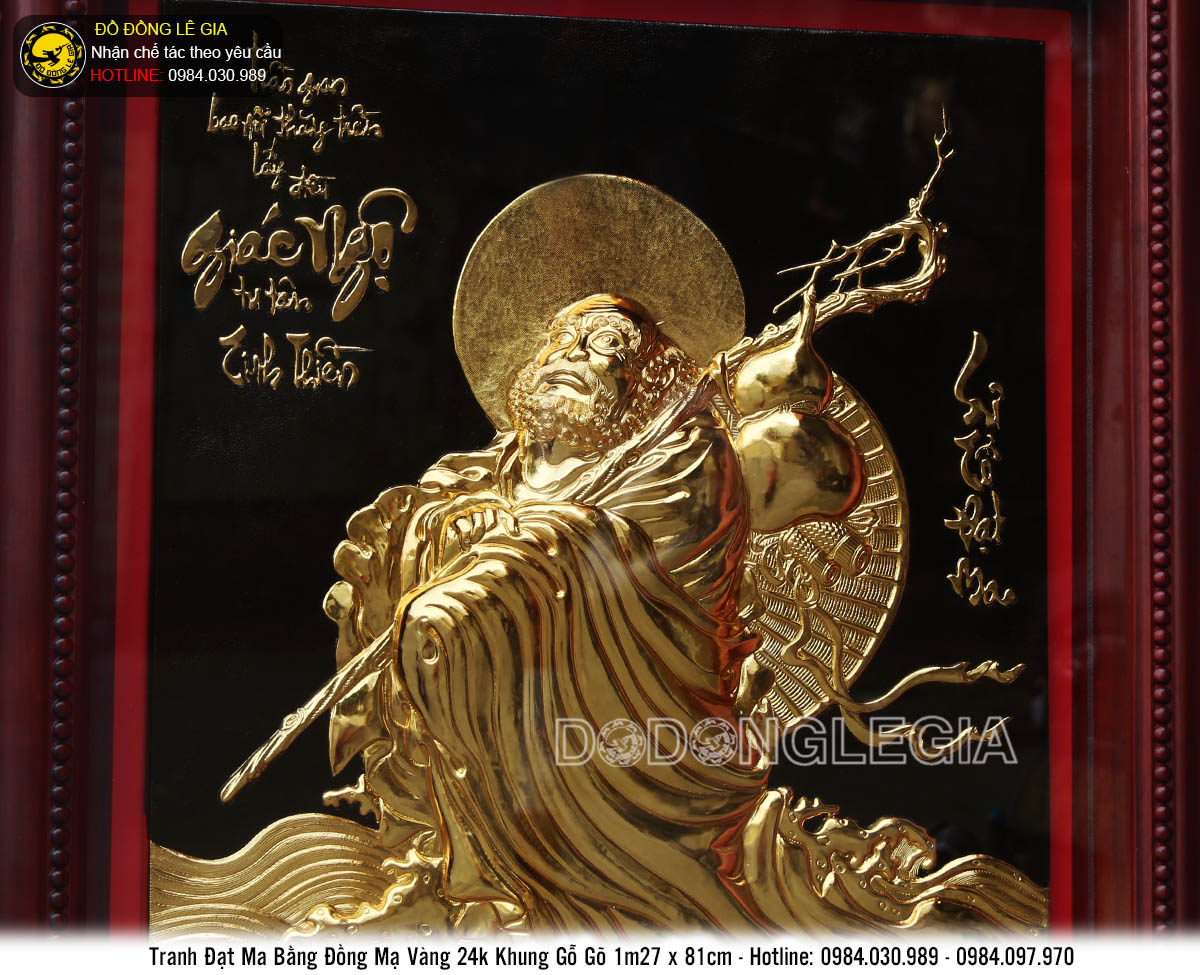 | Tên sản phẩm: | Tranh đồng Đạt ma sư tổ mạ vàng 24k, khung gỗ gõ |