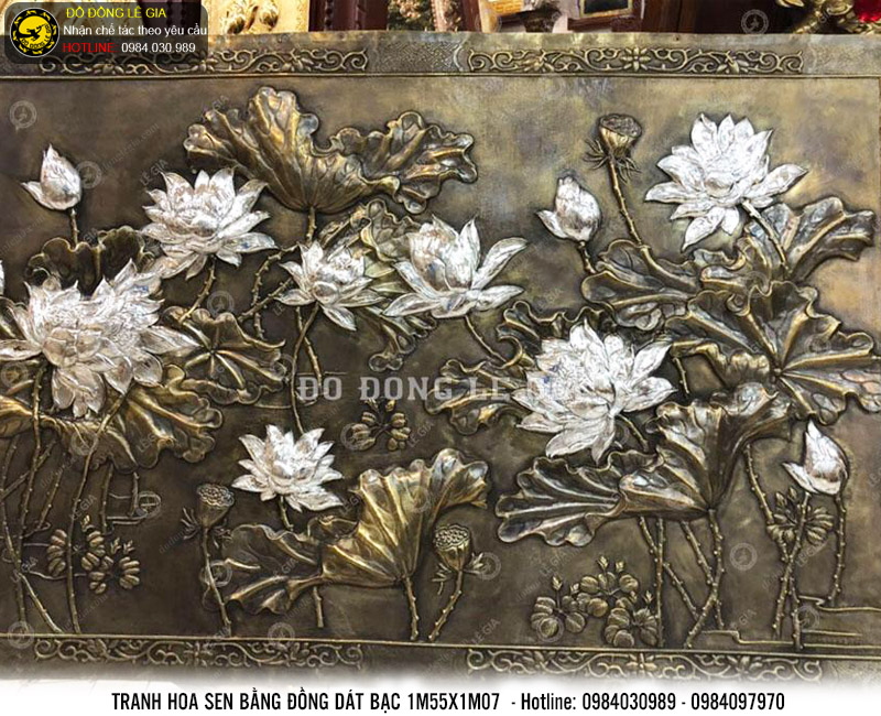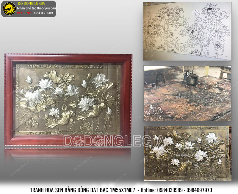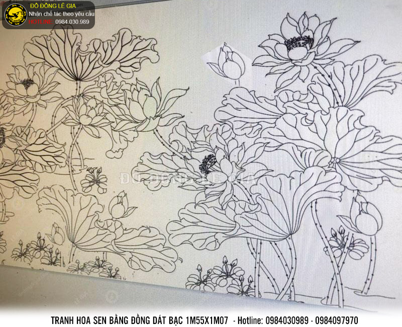 Sau khi tiếp nhận thông tin, yêu cầu từ phía khách hàng yêu cầu chế tác riêng bức Tranh Hoa Sen Bằng Đồng Dát Bạc 1m55x1m07 . Chúng tôi đã tiến hành thiết kế, lên ý tưởng, chỉnh sửa theo yêu cầu của khách hàng.