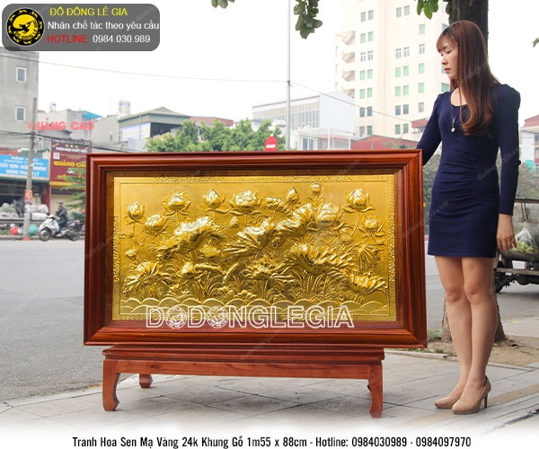 Tên sản phẩm: | Tranh đồng Hoa sen mạ vàng 24k, khung gỗ Hương |