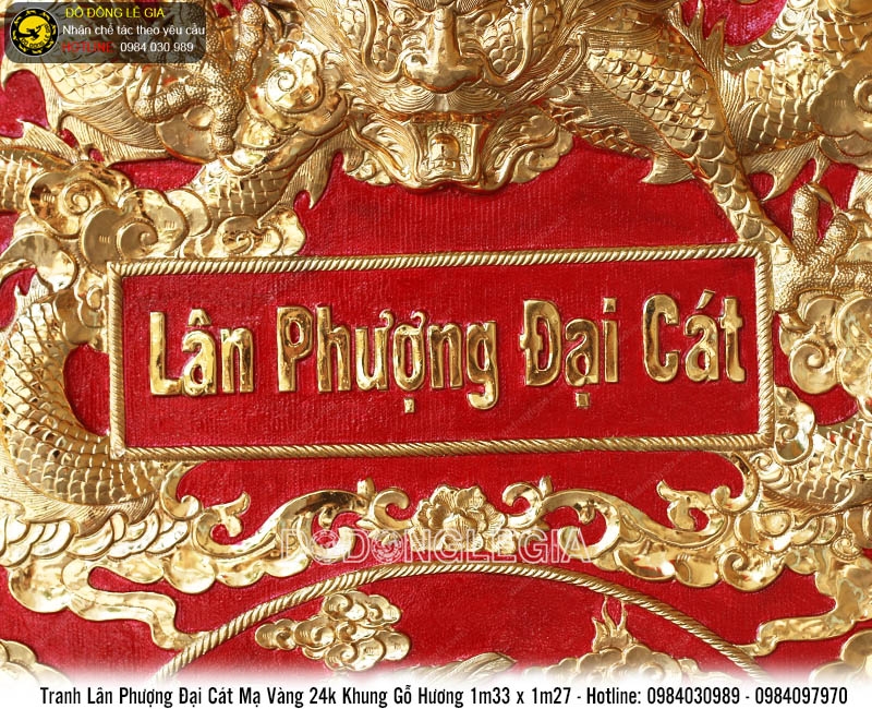 Bức tranh tái hiện hình ảnh của Thần thú Lân và Phượng đang kết hợp thành một vòng. Qua đôi bàn tay tuyệt vời của các nghệ nhân ta có thể thấy rõ sự uyển chuyển, mềm mại , thanh cao của hai loại thần thú này trong bức tranh như đang hòa quyện vào nhau. Sự độc đáo, khác biệt của tranh đồng Lân Phượng Đại Cát mạ vàng 24k chế tác theo yêu cầu so với các dòng tranh đồng Lân Phượng Đại Cát trên thị trường đó là việc mạ vàng 24k. Đây là nghệ thuật phối kết hợp giữa 2 kim loại quý là vàng đồng. Sự kết hợp hài hoà của màu đồng đỏ, màu vàng đã khiến bức tranh trông vô cùng cao quý, hấp dẫn và có chiều sâu hơn.