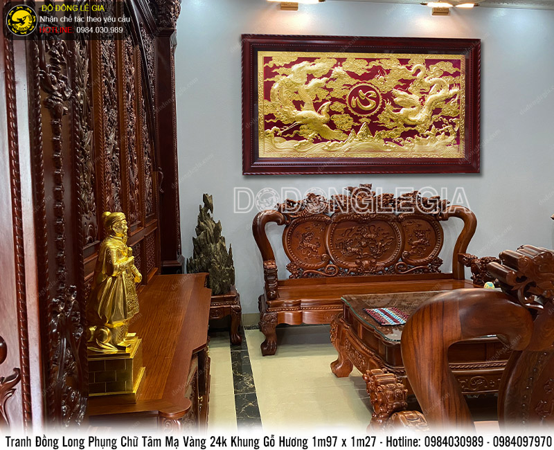 1. Giới thiệu chung về tranh đồng Long Phụng chữ Tâm mạ vàng 24k