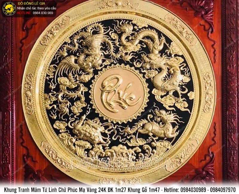 Tên sản phẩm: | Tranh đồng Mâm tứ linh chữ Phúc mạ vàng 24k |