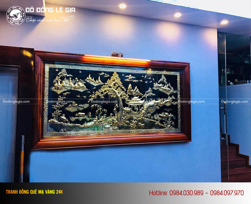 Tranh đồng quê hương mạ vàng 24k gợi nhớ về tuổi thơ, thuở chăn trâu cắt cỏ êm đêm, không gợn chút ồn ào, xô bồ như hiện nay. Bức tranh tuy mộc mạc, đơn giản nhưng không kém phân trọng bởi chất liệu đồng và vàng thanh khiết. Do đó là sự lựa chọn hàng đầu để trang trí nội thất trong nhà và cơ quan.
