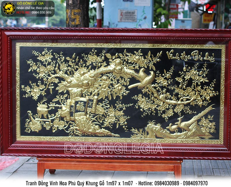 Khám phá vẻ đẹp tinh xảo và ý nghĩa sâu sắc của Tranh đồng Vinh Hoa Phú Quý 197x107cm – chế tác thủ công từ đồng vàng nguyên khối, thích hợp làm quà tặng cao cấp cho đối tác, lãnh đạo, gia đình.