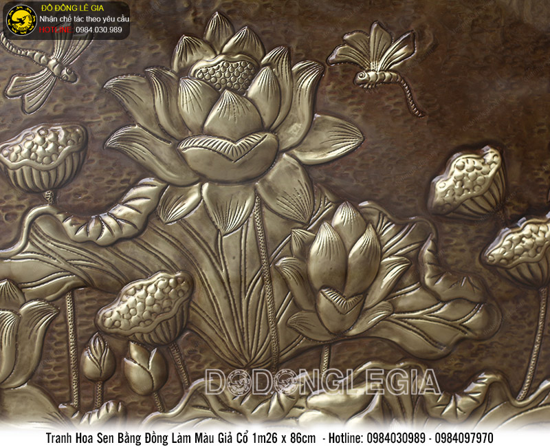 | Tên sản phẩm: | Tranh hoa sen bằng đồng làm màu giả cổ 1m26x86cm |