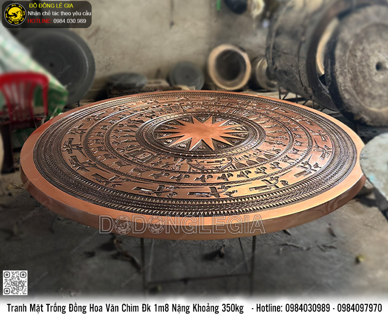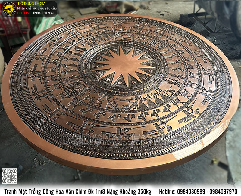 | Tên sản phẩm: | Tranh Mặt Trống Đồng Hoa Văn Chìm Đk 1m8 |