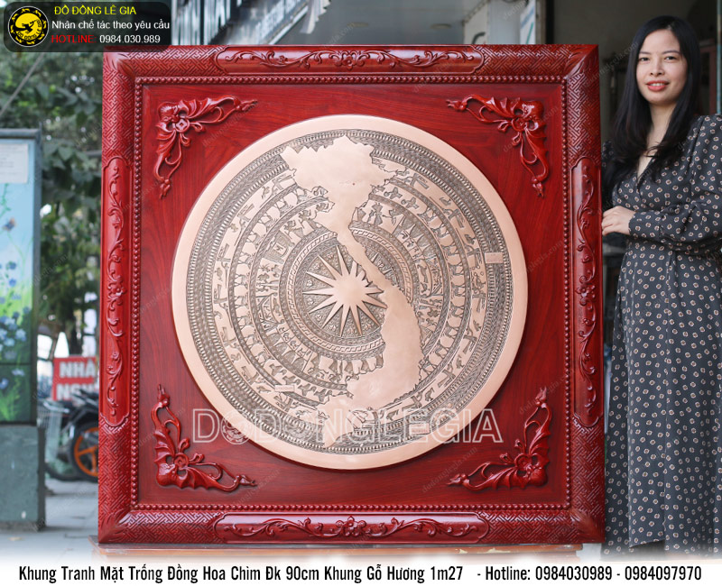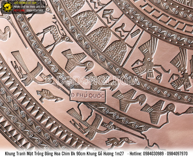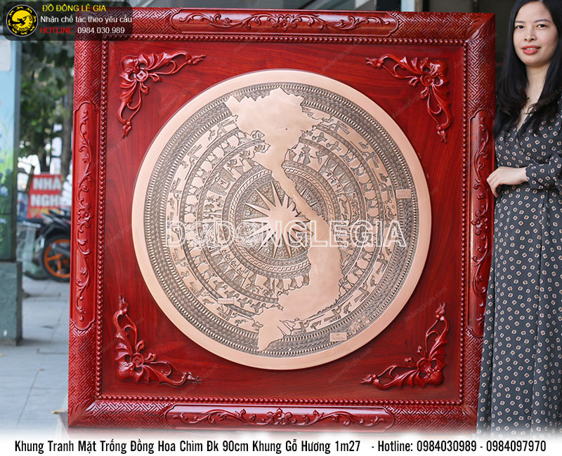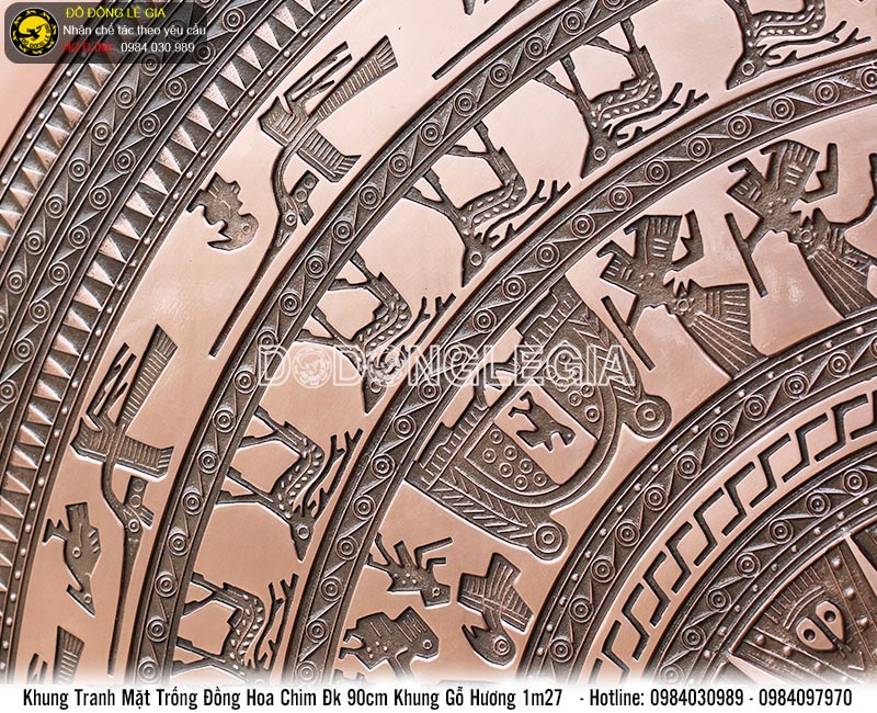 | Tên sản phẩm: | Tranh mặt trống đồng hoa văn chìm đường kính 90cm khung gỗ hương 1m27 |