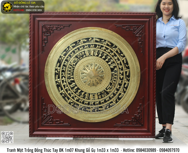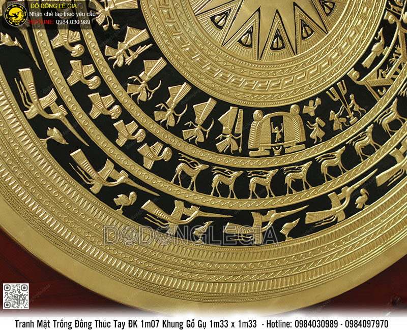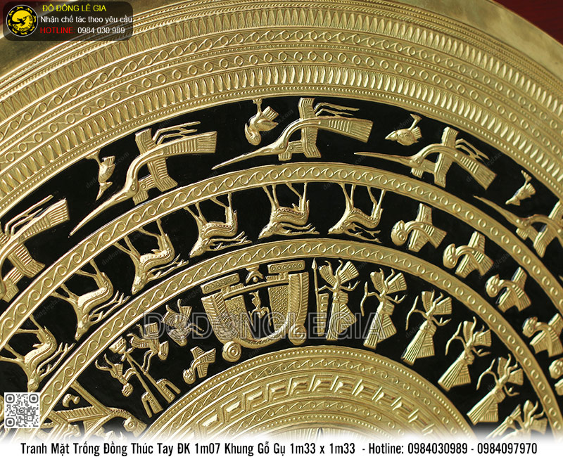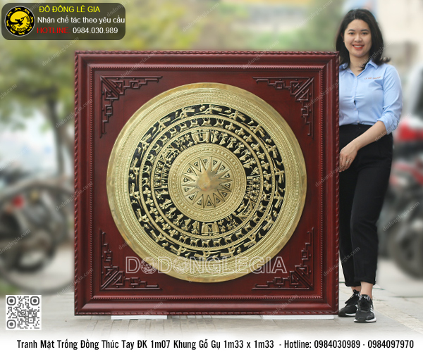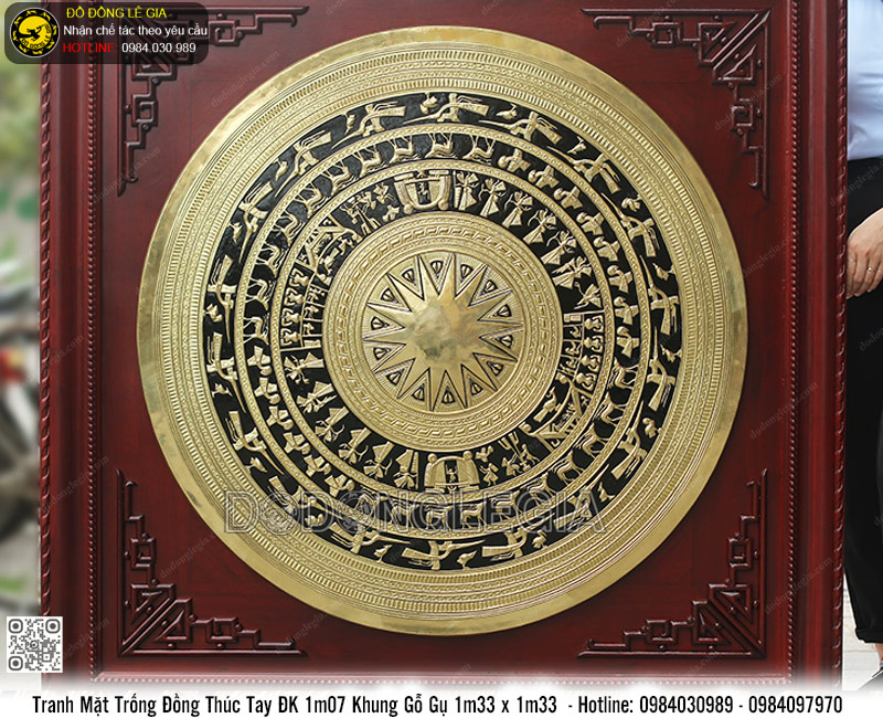 | Tên sản phẩm: | Tranh Mặt Trống Đồng Thúc Tay ĐK 1m Khung Gỗ Gụ 1m33 x 1m33 |