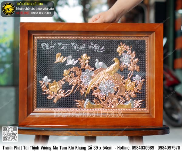 | Tên sản phẩm: | Tranh Phát Tài Thịnh Vượng mạ tam khí khung gỗ 38x54cm |