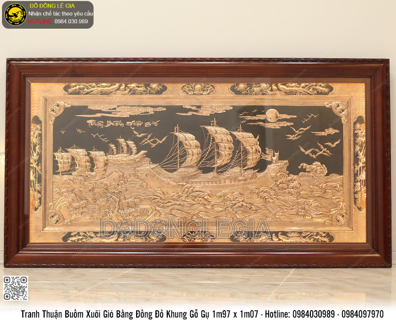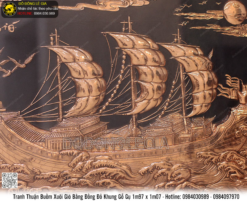 | Tên sản phẩm: | Tranh Thuận Buồm Xuôi Gió bằng đồng đỏ khung gỗ gụ 1m97 x 1m07 |