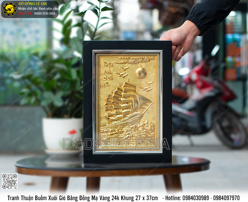 | Tên sản phẩm: | Tranh Thuận Buồm Xuôi Gió Mạ Vàng 24k Khung Giả Gỗ 27 x 37cm |