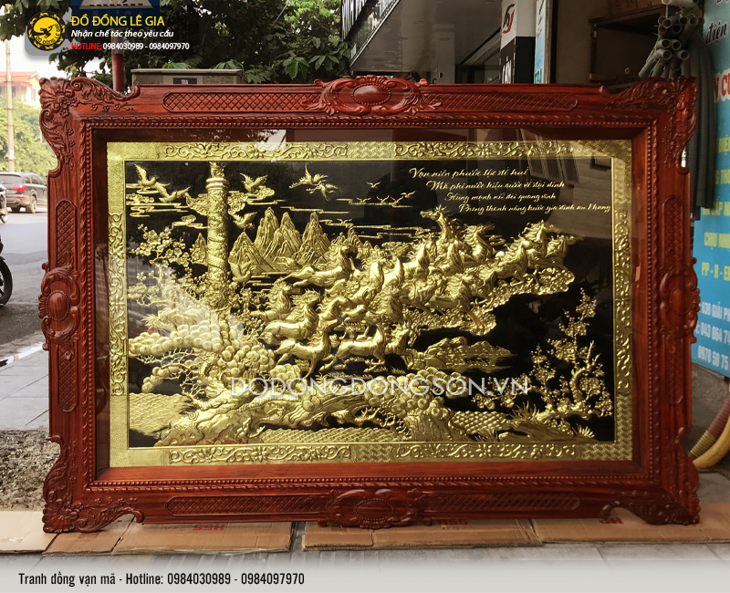 Bức tranh được gò chạm trên đồng tấm cao cấp. Từng đường nét của bức tranh được thể hiện sống động dưới bàn tay người thợ của Lê Gia. Treo tranh trong nhà không chỉ mang lại sự sang trọng đẳng cấp cho không gian nội thất mà còn mang lại nhiều may mắn tài lộc.
