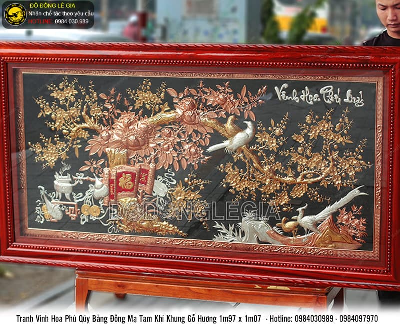 Tranh Vinh Hoa Phú Quý mạ tam khí khung gỗ hương 1m97x1m07 là sự kết tinh giữa nghệ thuật thủ công truyền thống và giá trị văn hóa – tâm linh sâu sắc. Đây không chỉ là vật phẩm trang trí cao cấp, mà còn là món quà ý nghĩa thể hiện sự trân trọng, lời chúc tốt lành đến người nhận. Chọn tranh đồng Lê Gia – là chọn sự bền vững, đẳng cấp và tinh tế.