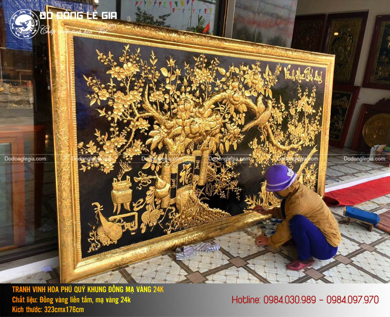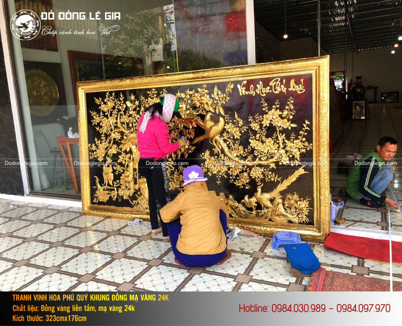 Tranh vinh hoa phú quý mạ vàng 24k của Lê Gia chế tác vừa có độ bền đẹp vừa có vẻ đẹp lộng lẫy, sang trọng. Và đặc biệt là đem lại cho gia chủ nhiều may mắn, tài lộc và cuộc sống vinh hoa phú quý.