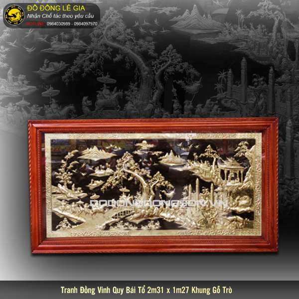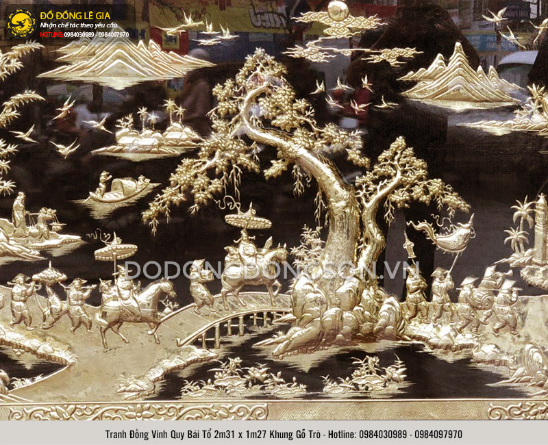 Tranh vinh quy bái tổ là một trong những mẫu tranh đồng được nhiều khách hàng quan tâm và yêu thích hiện nay. Bởi lẽ bức tranh thể hiện truyền thống dân tộc, truyền thống uống nước nhớ nguồn, tôn sư trọng đạo. Đồng thời thể hiện tinh thần hiếu học của người dân Việt Nam. Bức tranh vinh quy chứa đựng nhiều giá trị phong thủy ý nghĩa khi trưng bày. Đồ đồng Lê Gia xin giới thiệu tới quý bạn đọc mẫu tranh vinh quy bái tổ 2m31x1m27.