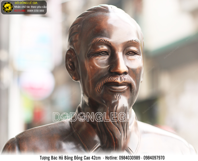 | Tên sản phẩm: | Tượng Bác Hồ bằng đồng hạ màu xi cao 42cm |