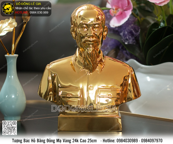 | Tên sản phẩm: | Tượng Bác Hồ Bằng Đồng Mạ Vàng 24k Cao 25cm |