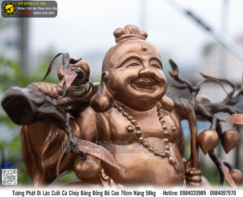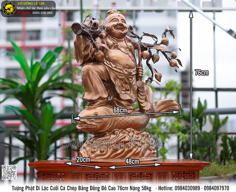 | Tên sản phẩm: | Tượng Di Lặc Cưỡi Cá Chép đồng đỏ cao 76cm |