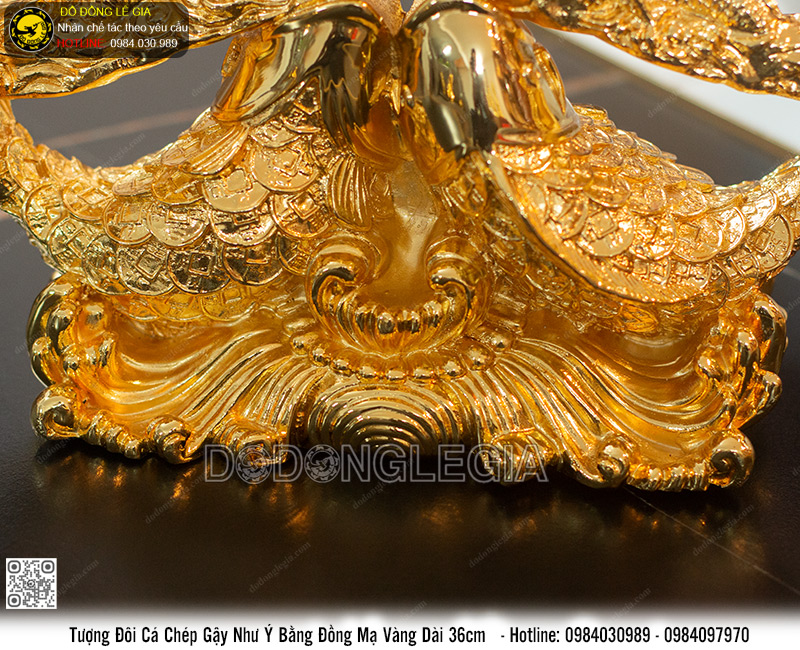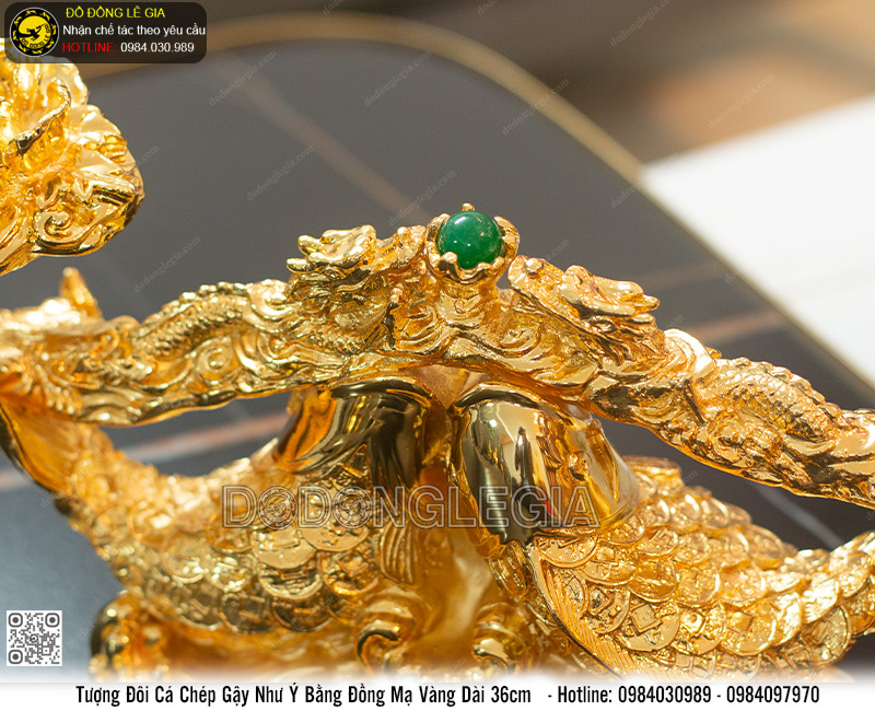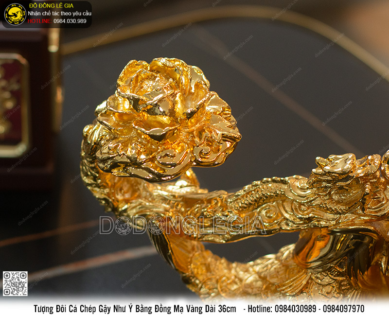| Tên sản phẩm: | Tượng Đôi Cá Chép Gậy Như Ý Bằng Đồng Mạ Vàng Dài 36cm |