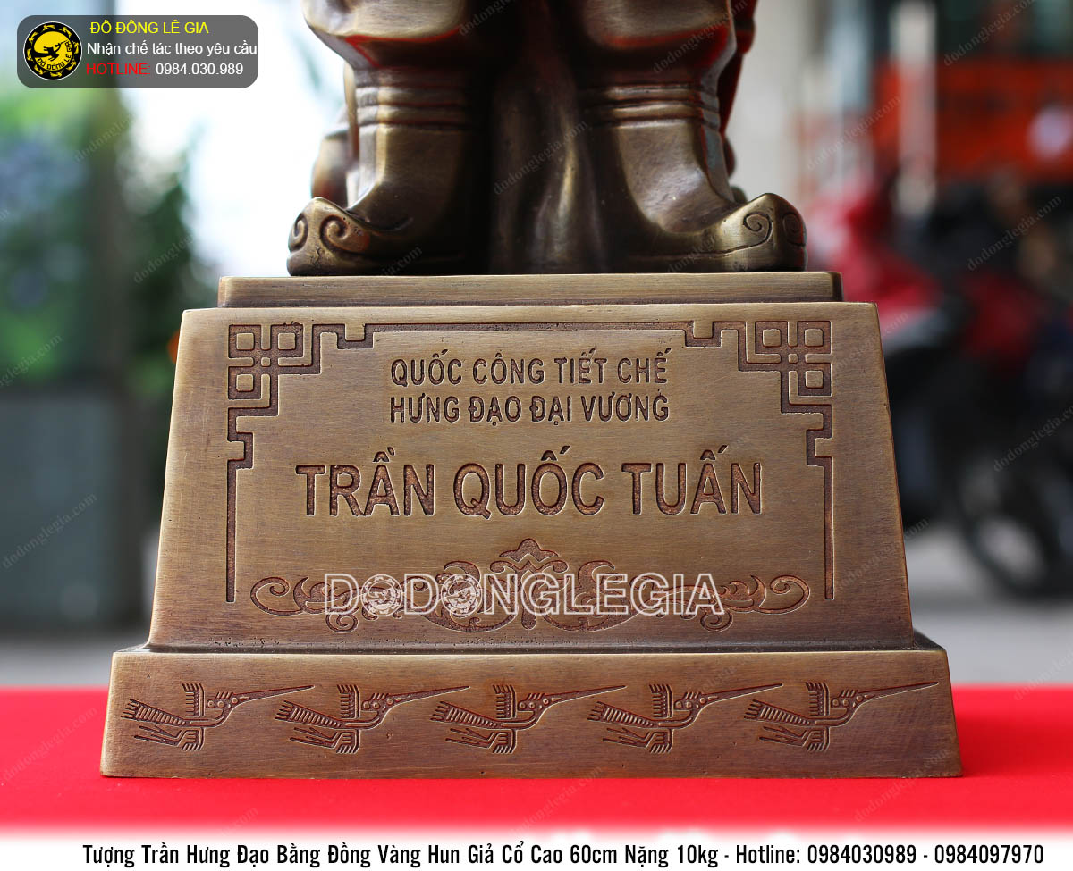 Mẫu Tượng Đức Thánh Trần này được chế tác theo quy cách khuôn đúc công nghệ trên chất liệu đồng vàng, sau đó được sửa nguội và hun màu giả cổ tạo nét xưa cho sản phẩm. Tượng đại tướng trước khi xuất xưởng đều được kiểm duyệt và đánh giá chuyên môn kỹ lưỡng. Đảm bảo sản phẩm tới tay khách hàng luôn đạt chuẩn và có chất lượng tốt nhất.