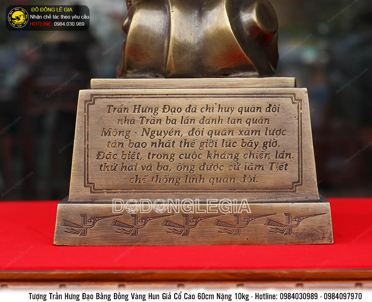 Đức Thánh Trần, tên thật là Trần Quốc Tuấn, tước hiệu Hưng Đạo đại vương, là một nhà chính trị, nhà quân sự, tôn thất hoàng gia Đại Việt thời Trần. Ông được biết đến trong lịch sử Việt Nam với việc chỉ huy quân đội đánh tan hai cuộc xâm lược của quân Nguyên – Mông năm 1285 và năm 1288. Để tôn vinh và ghi nhớ công ơn của ông, nhân dân ta lựa chọn đúc tượng ông để bày tỏ niềm thành kính của mình. Hiểu được ý nghĩa to lớn đó, Lê Gia cho ra mắt nhiều mẫu tượng đồng Đức Thánh Trần để phục vụ nhu cầu quý khách
