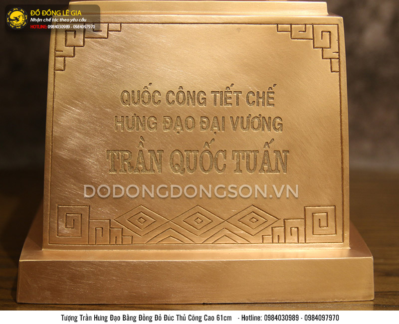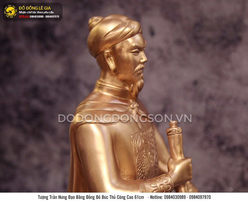 Bên cạnh đó, đồ đồng Lê Gia nhận đúc đồng theo yêu cầu của khách hàng. Qúy khách chỉ cần yêu cầu về hình tượng, kích thước, mẫu mã, chúng tôi sẽ đảm bảo hoàn thành đúng ý. Mang đến những sản phẩm chất lượng nhất. Bạn có thể tham khảo thêm tượng Hưng Đạo vương bằng đồng kích thước 81cm.