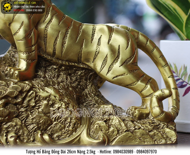 Với kích thước dài 26 cm, mẫu tượng hổ này thích hợp bày trên các đôn gỗ, kệ tủ, bàn làm việc, đặt tại phòng khách, thư phòng. Có thể sử dụng bày trang trí hoặc làm quà tặng mừng dịp đặc biệt vô cùng ý nghĩa. Ngoài ra, bạn cũng có thể mạ, dát vàng tượng hổ để thêm điểm nhấn trong không gian và tính cát khí trong phong thủy.