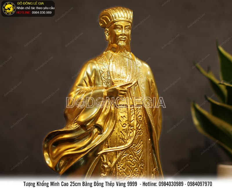 | Tên sản phẩm: | Tượng Khổng Minh bằng đồng thếp vàng 9999 cao 25cm |