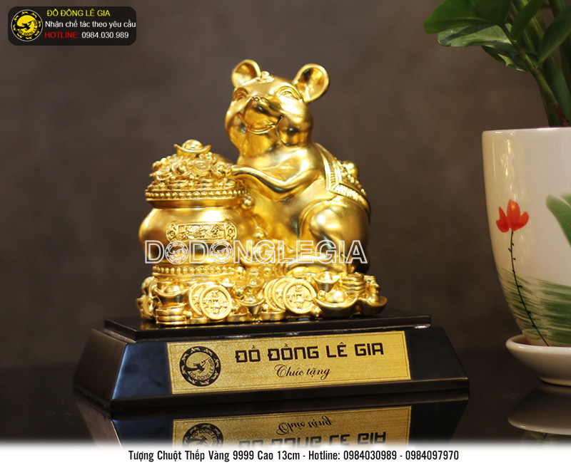Tượng linh vật chuột bằng đồng thếp vàng 9999 |