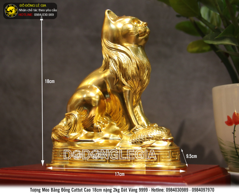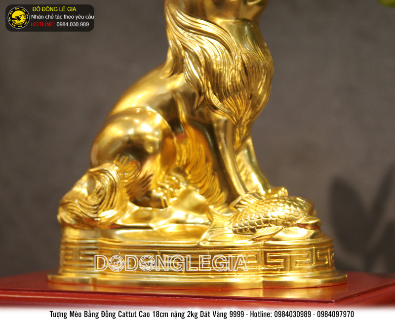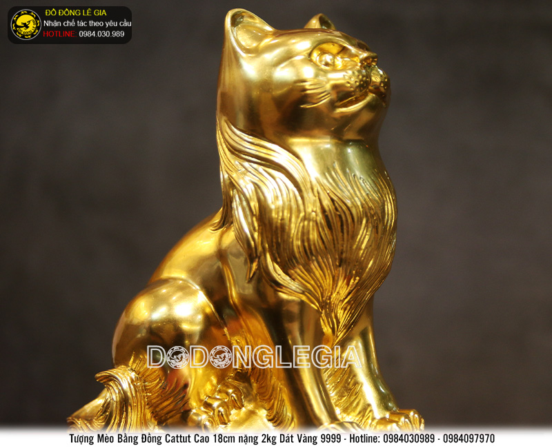 | Tên sản phẩm | Tượng linh vật mèo bằng đồng đồng, thếp vàng 9999 |