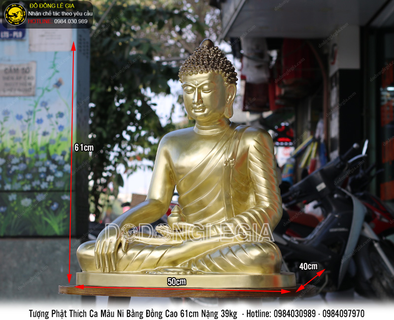 | Tên sản phẩm: | Tượng Ngài thích ca mâu ni bằng đồng vàng cao 61cm |