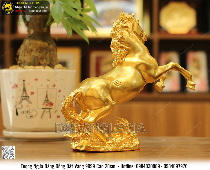 Khám phá vẻ đẹp oai phong và ý nghĩa phong thủy sâu sắc của Tượng Ngựa Chiến dát vàng 9999 cao 28cm. Quà tặng sang trọng, ý nghĩa cho người tuổi Ngọ và các dịp quan trọng. Đúc thủ công, dát vàng cao cấp, chỉ có tại Lê Gia.