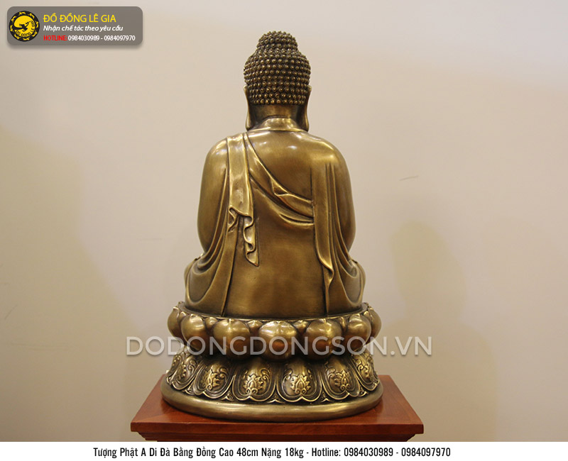 Tượng A Di Đà bằng đồng thau của đồ đồng Lê Gia được đúc hoàn toàn thủ công theo phương pháp truyền thống. Quy trình đúc đồng 07 bước nghiêm ngặt, khắt khe, đem đến những sản phẩm hoàn thiện nhất cho khách hàng.