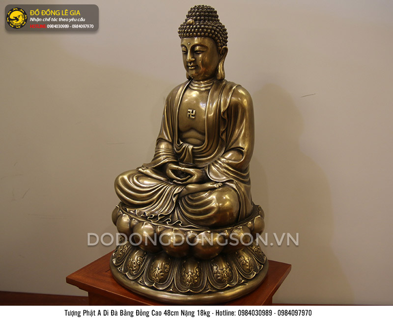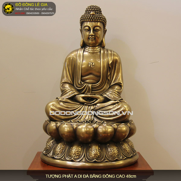 Với kích thước nhỏ gọn khoảng 48cm, nặng 18kg, tượng A Di Đà của đồ đồng Lê Gia thích hợp đặt trong các không gian như phòng khách, phòng làm việc, gian thờ hay sử dụng làm quà tặng cho người thân, đồng nghiệp. Món quà nhỏ sang trọng, đẳng cấp và chứa đựng nhiều may mắn chắc chắn sẽ khiến người nhận vui mừng.