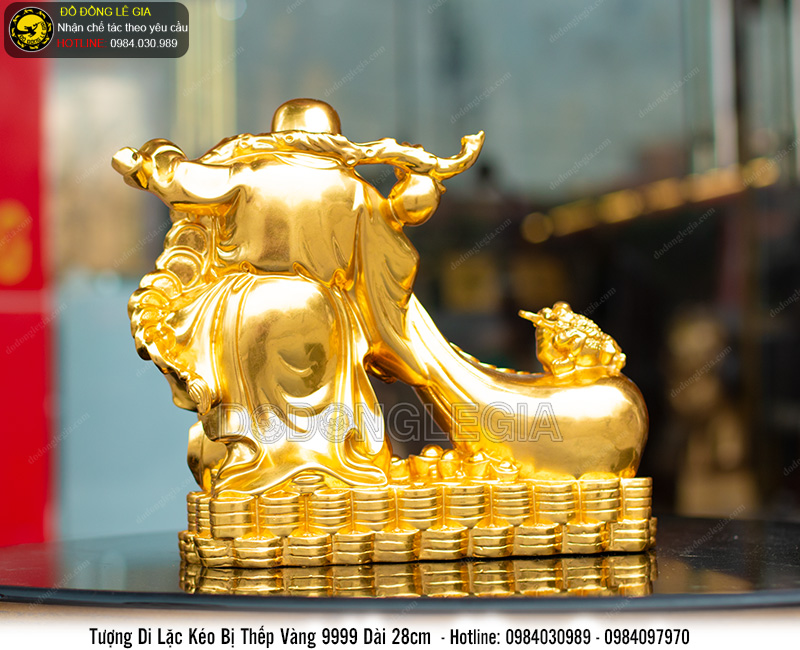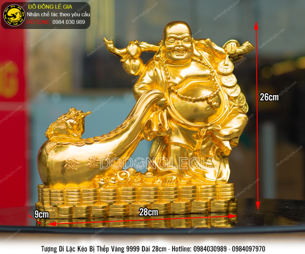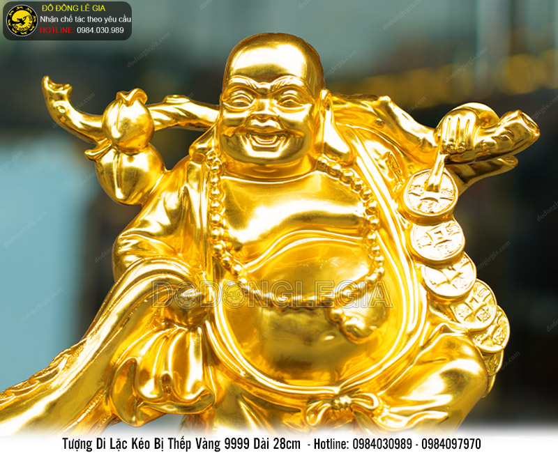 | Tên sản phẩm: | Tượng Phật Di Lặc thếp vàng 9999 dài 21cm |