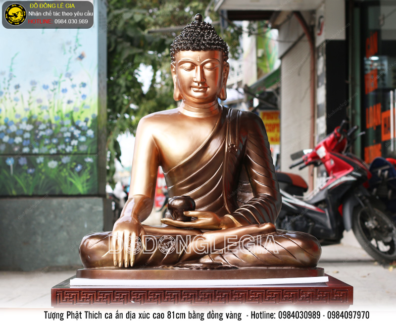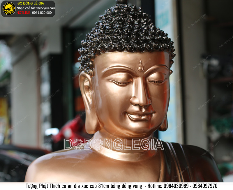 | Tên sản phẩm: | Tượng Phật Thích ca ấn địa xúc cao 81cm bằng đồng vàng |