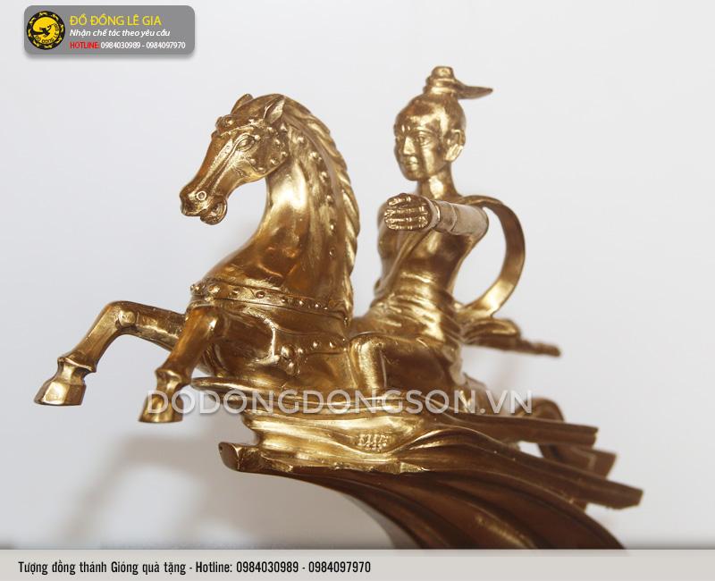 Tượng Thánh Gióng bằng đồng mô phỏng hình ảnh vị thánh trẻ tuổi tay mang tre ngà, thúc ngựa hướng về trời xanh. Tượng được các nghệ nhân Đúc Đồng Lê Gia chế tác thành công và mang đến cho khách hàng sự hài lòng tuyệt đối.