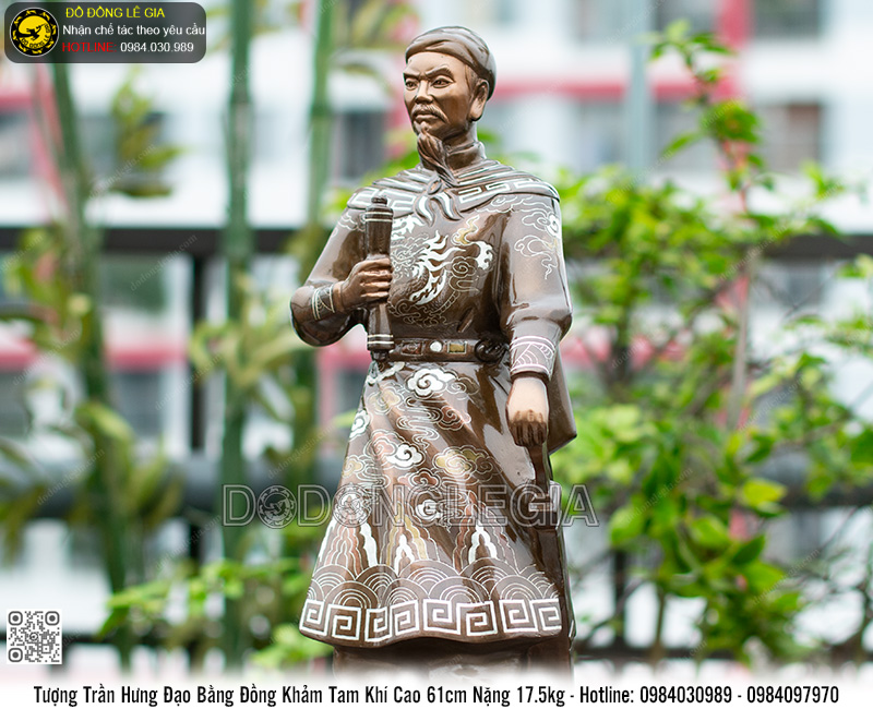 | Tên sản phẩm: | Tượng Trần Hưng Đạo Bằng Đồng Khảm Tam Khí Cao 61cm Nặng 17,5kg |