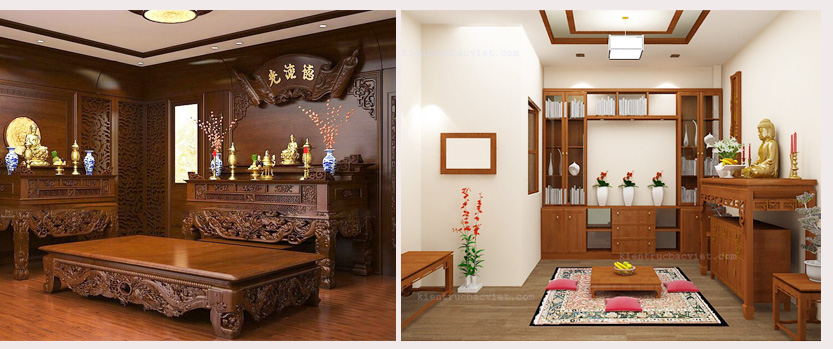 - Phía sau bàn thờ phải là bức tường vững chãi, không được dựa vào tường kính hoặc cửa sổ,…